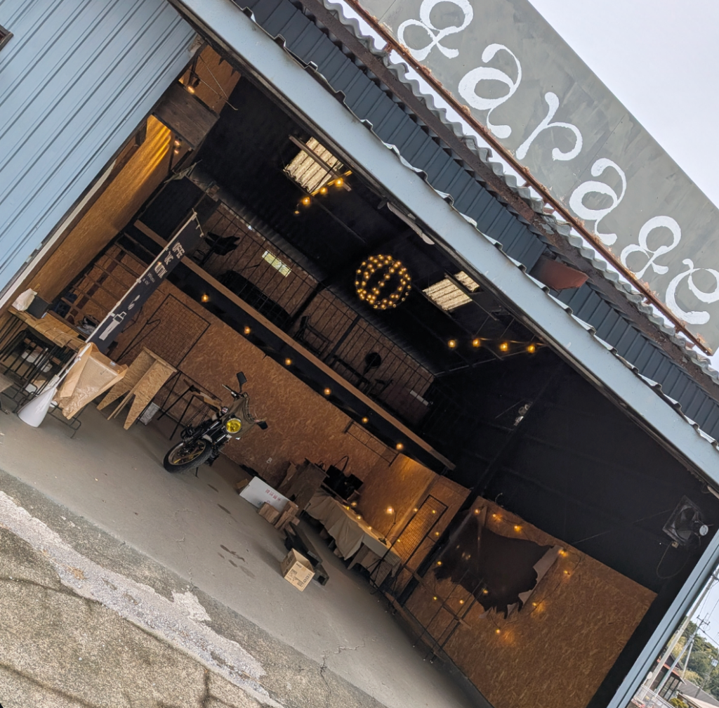 当日は、ガレージの大きな跳ね上げ扉はあえて人が通れる程度に抑え、屋内灯の暖かな光が漏れる「隠れ家」のような空間にする予定です。