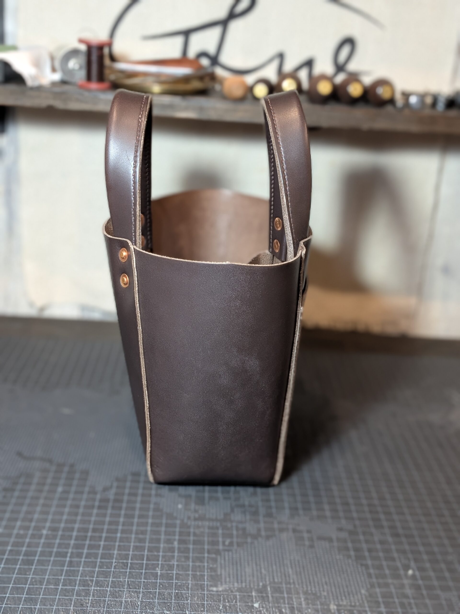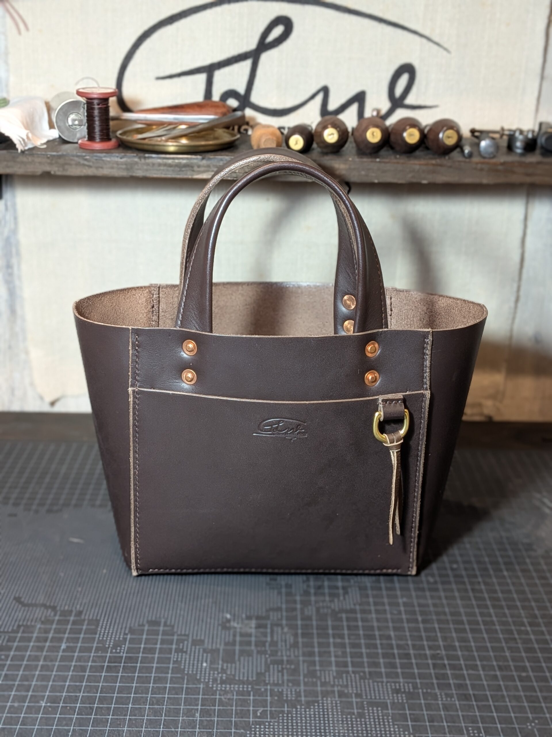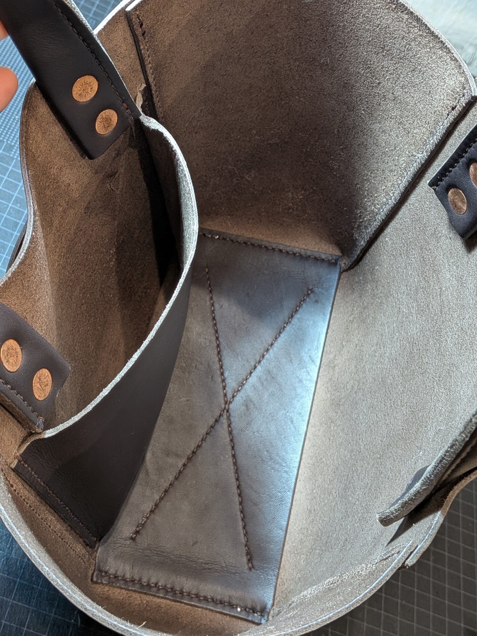 持ち手部分には、経年変化を楽しめる銅製のリベット(コッパーリベット)を採用。